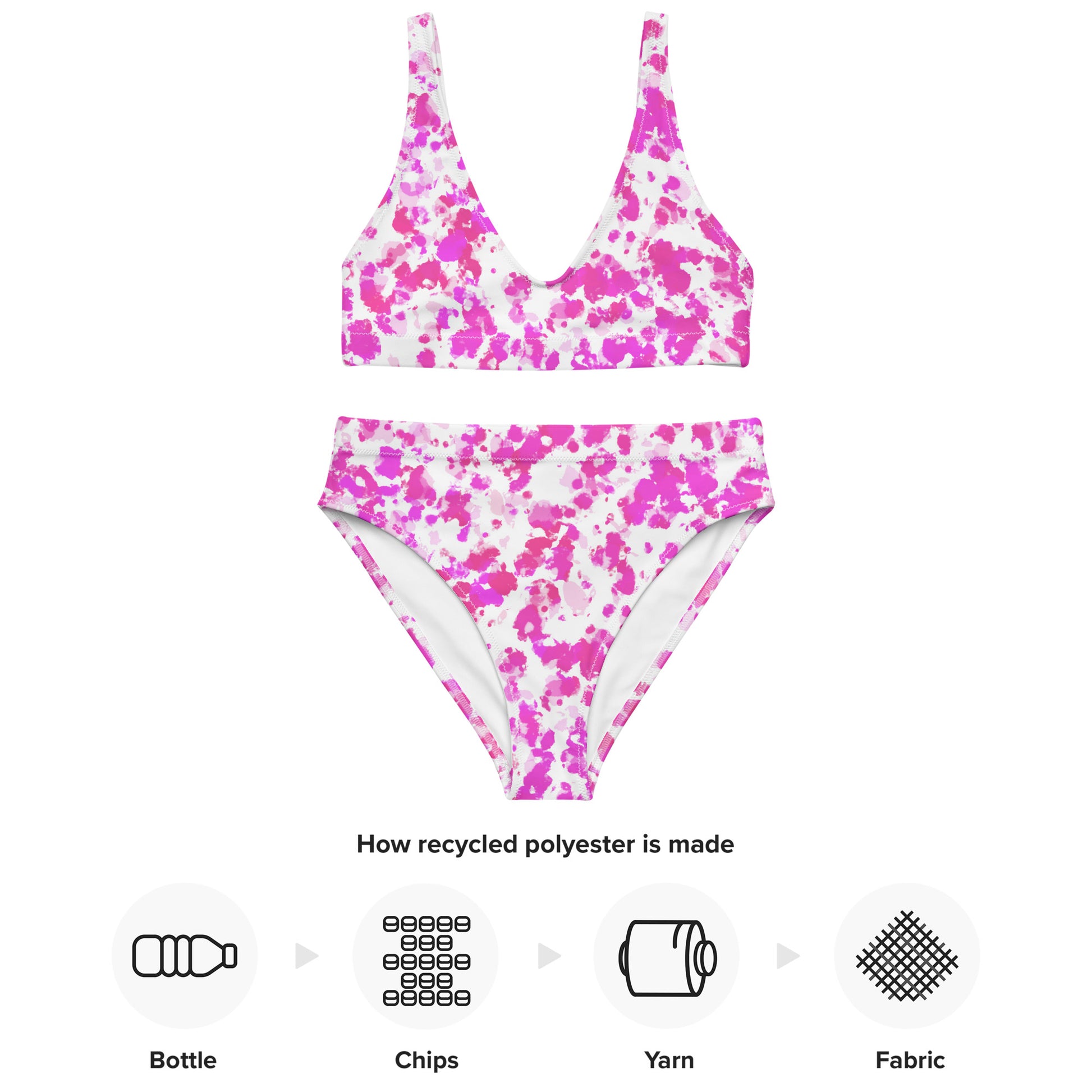 Transform your beach look with our "Bright Pink Monty" Recycled High-waisted Bikini! Made from recycled materials, this eco-friendly bikini not only reduces your environmental impact, but also provides a flattering, high-waisted fit. Feel good and look great in our sustainable swimwear option. Print is hand designed using Adobe fresco.